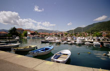 Lepetane, das zu Tivat gehört, verbindet eine Autofähre mit der